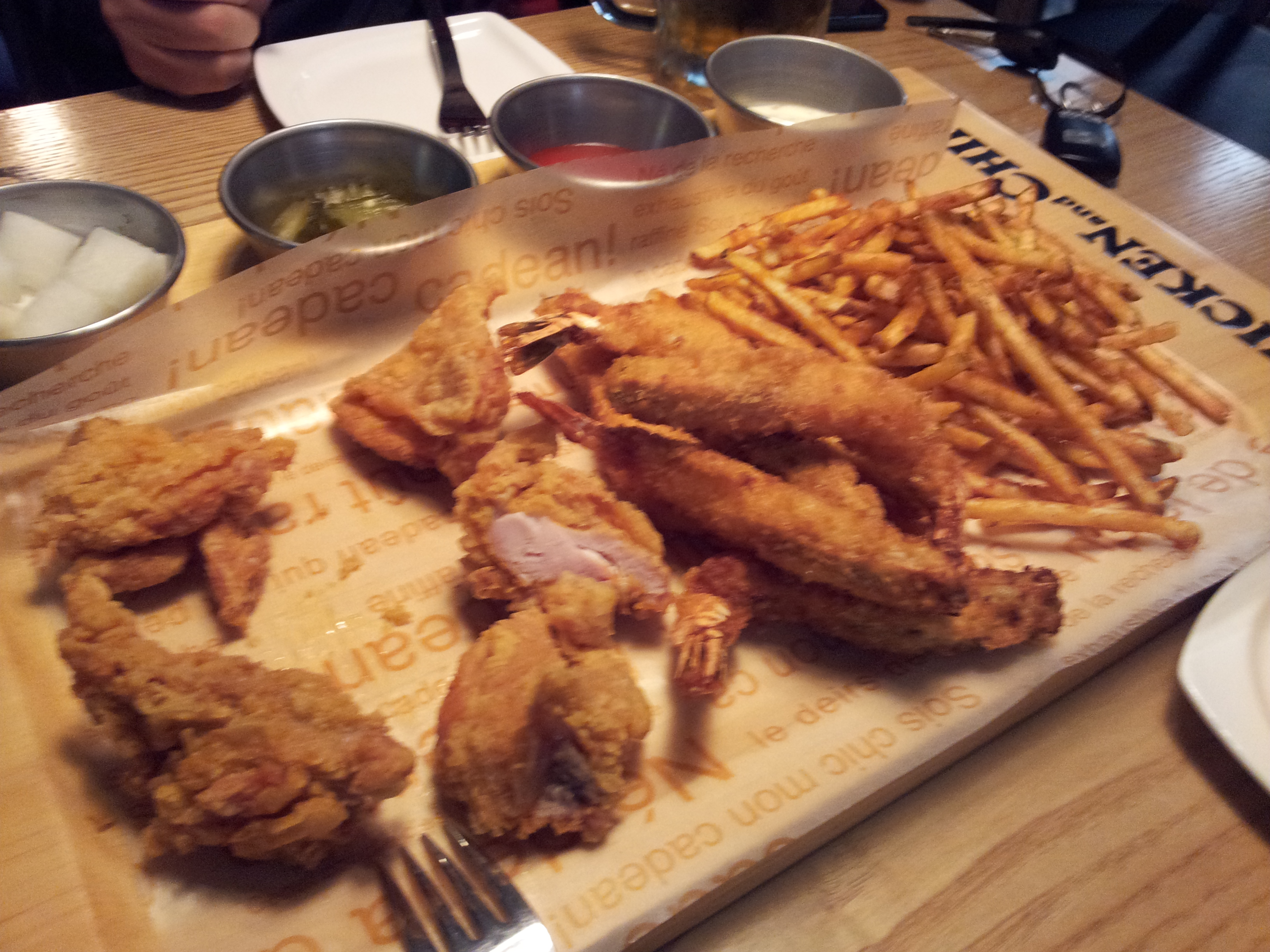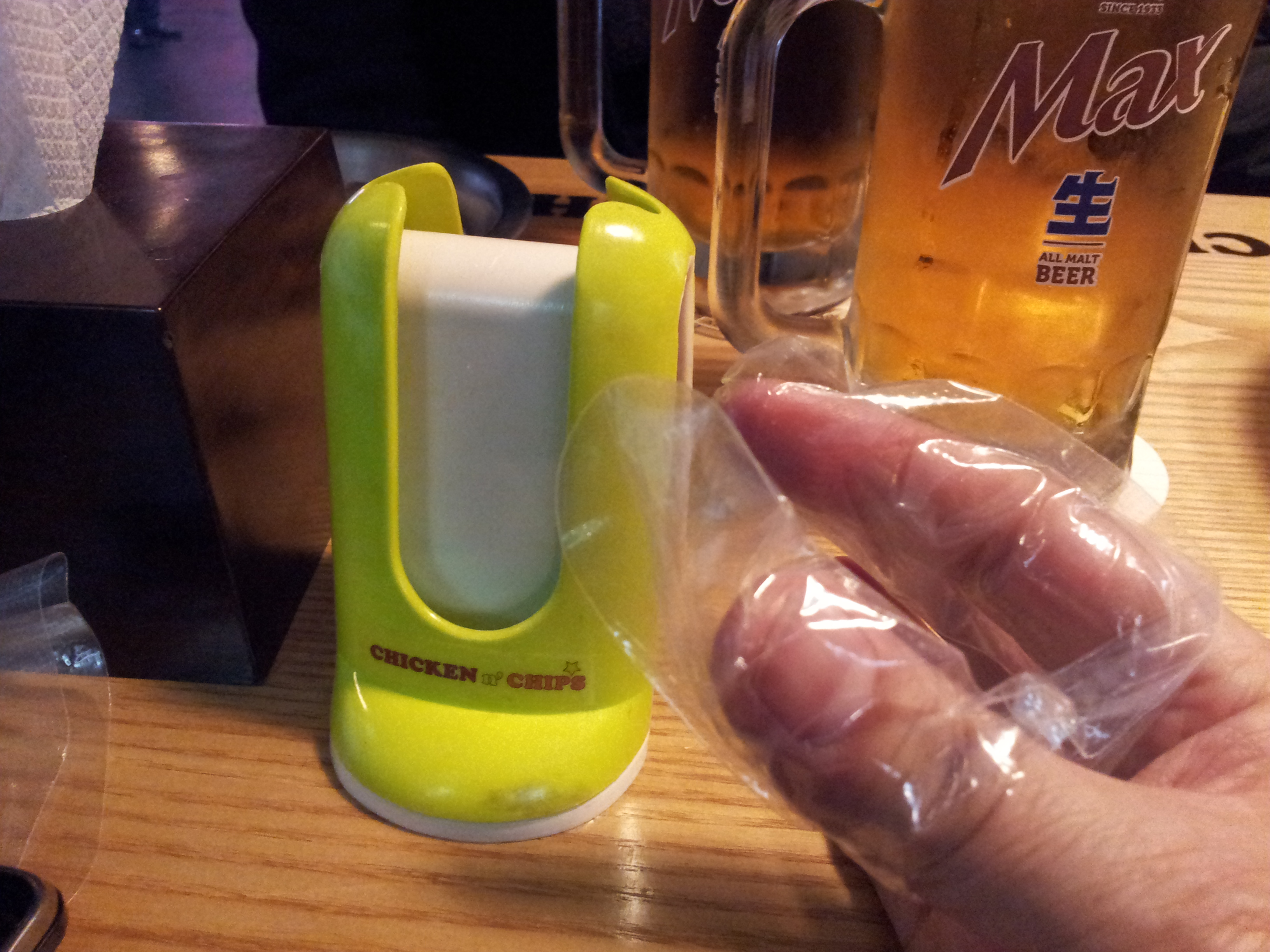 ソウルのチキン店/脂っぽいので指袋がある