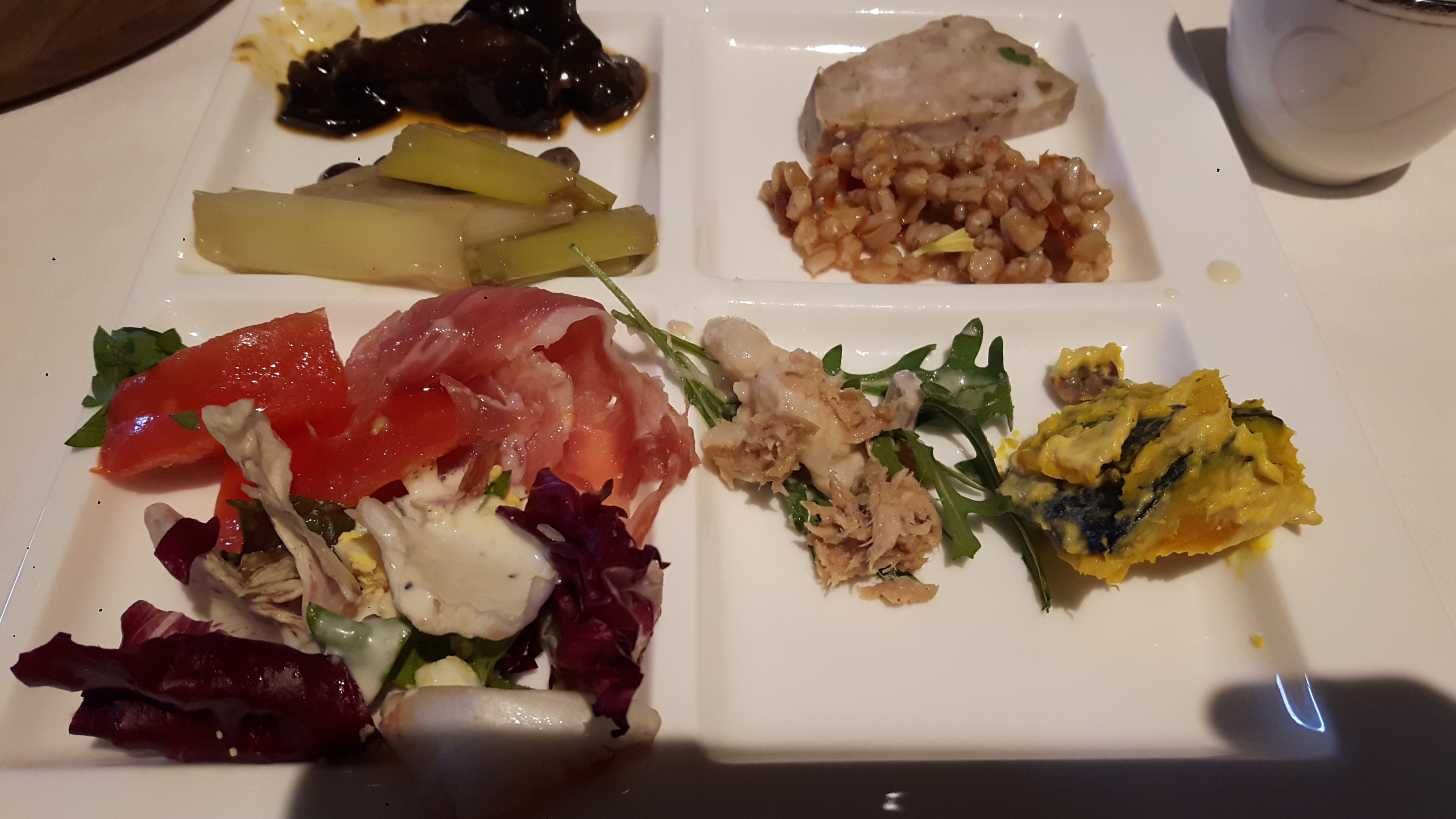 野菜中心の前菜の盛り合わせのみセルフサービスでこれは楽しめます。