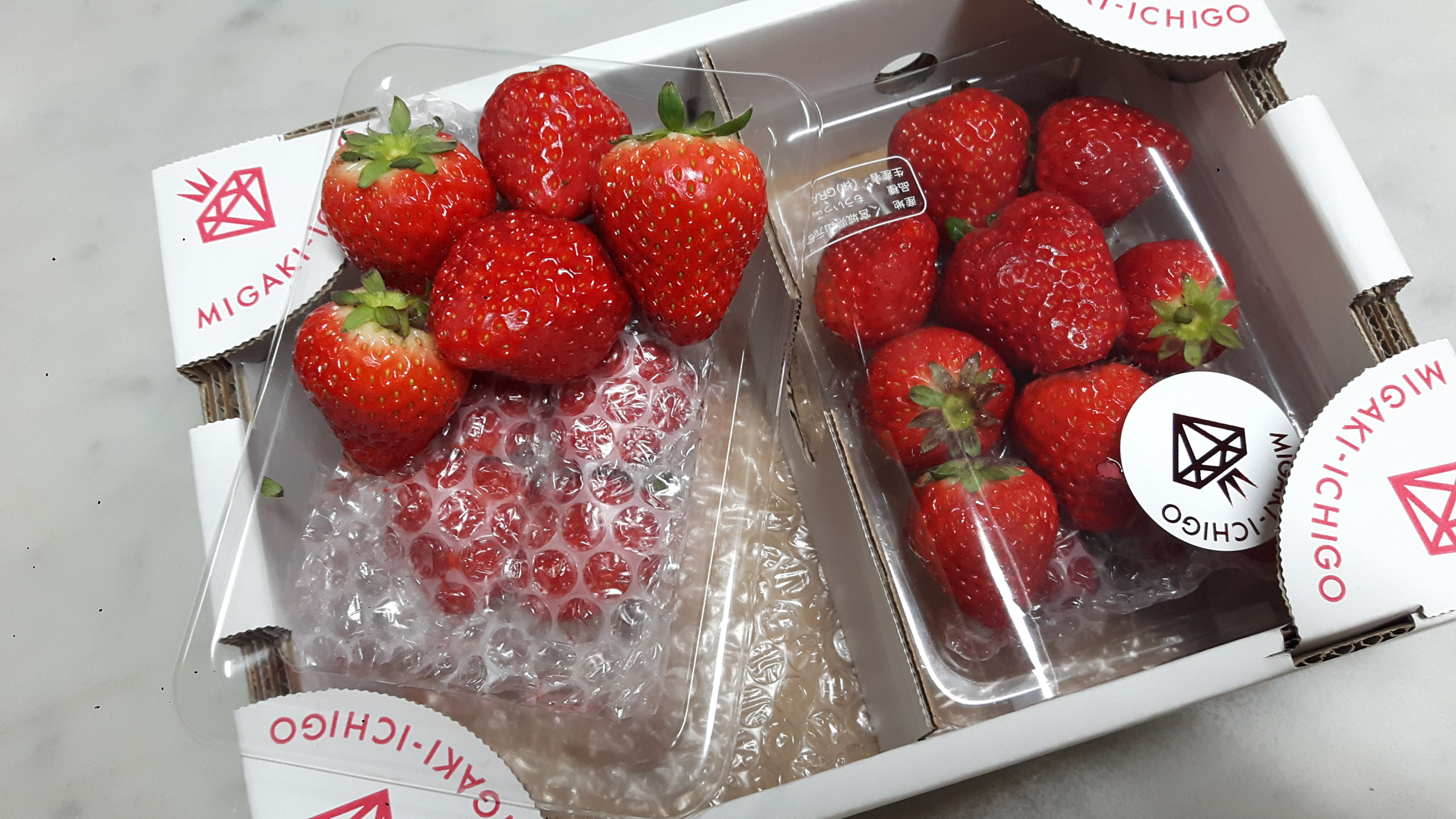 最近ブランディングされた「ミガキ」いちごを宮城から取り寄せ。