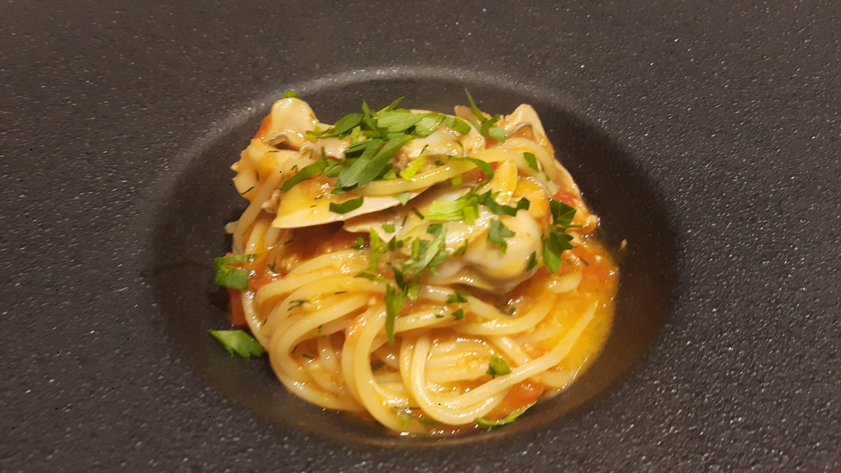 ハマグリのパスタ、サクラエビとタケノコのパスタ