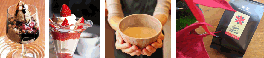 世田谷店では、ご好評の季節替わりのパフェシリーズより、すべての素材に当店のコーヒーを使用した究極の「コーヒーパフェ」(12月限定)、旬のいちごを味わい尽くす「いちごパフェ」(1〜3月)が登場。また、寒い時期に身も心もほっこり温まる「ハニージンジャーオレ」(11〜12月限定)などのホットドリンクをお楽しみいただけます。